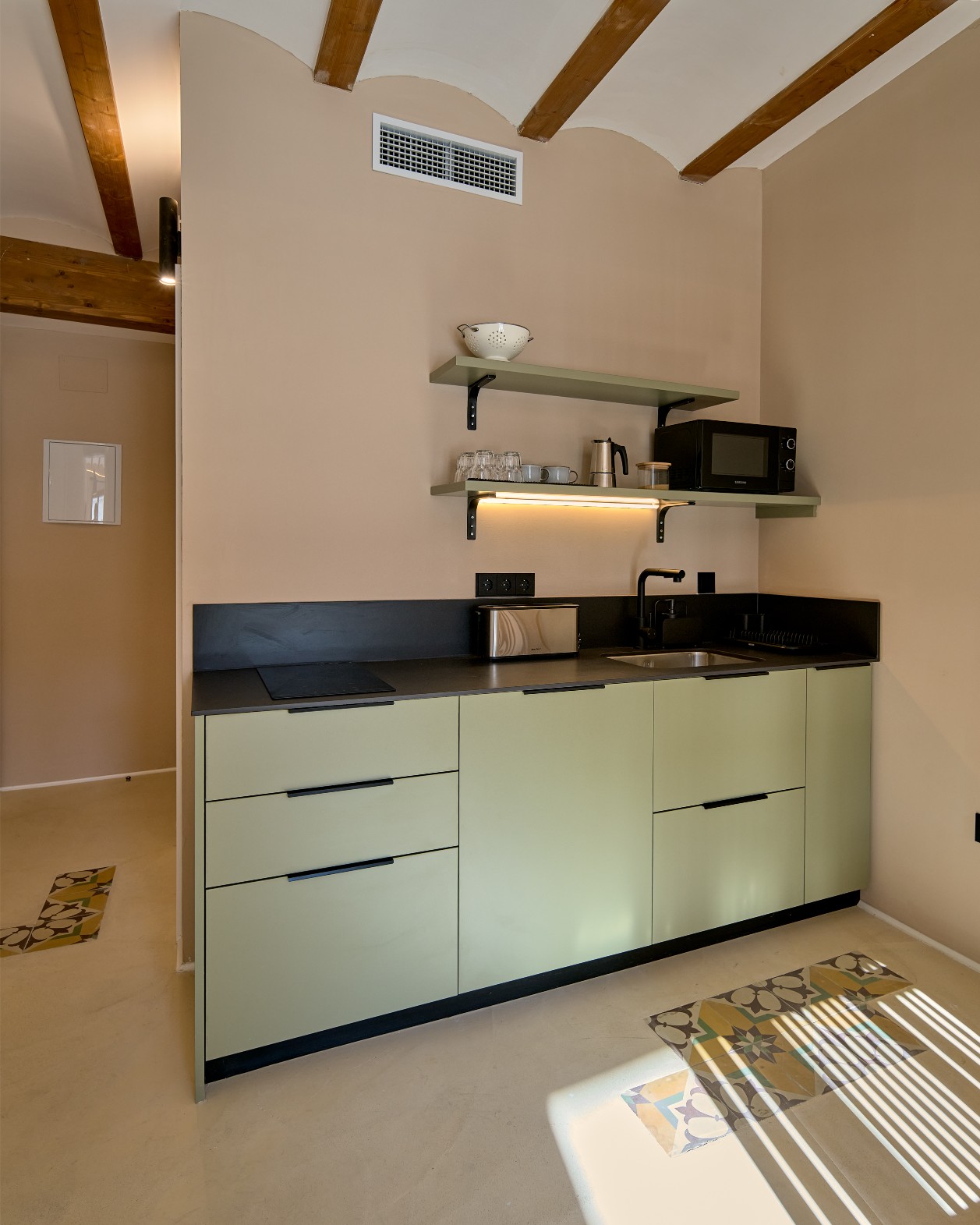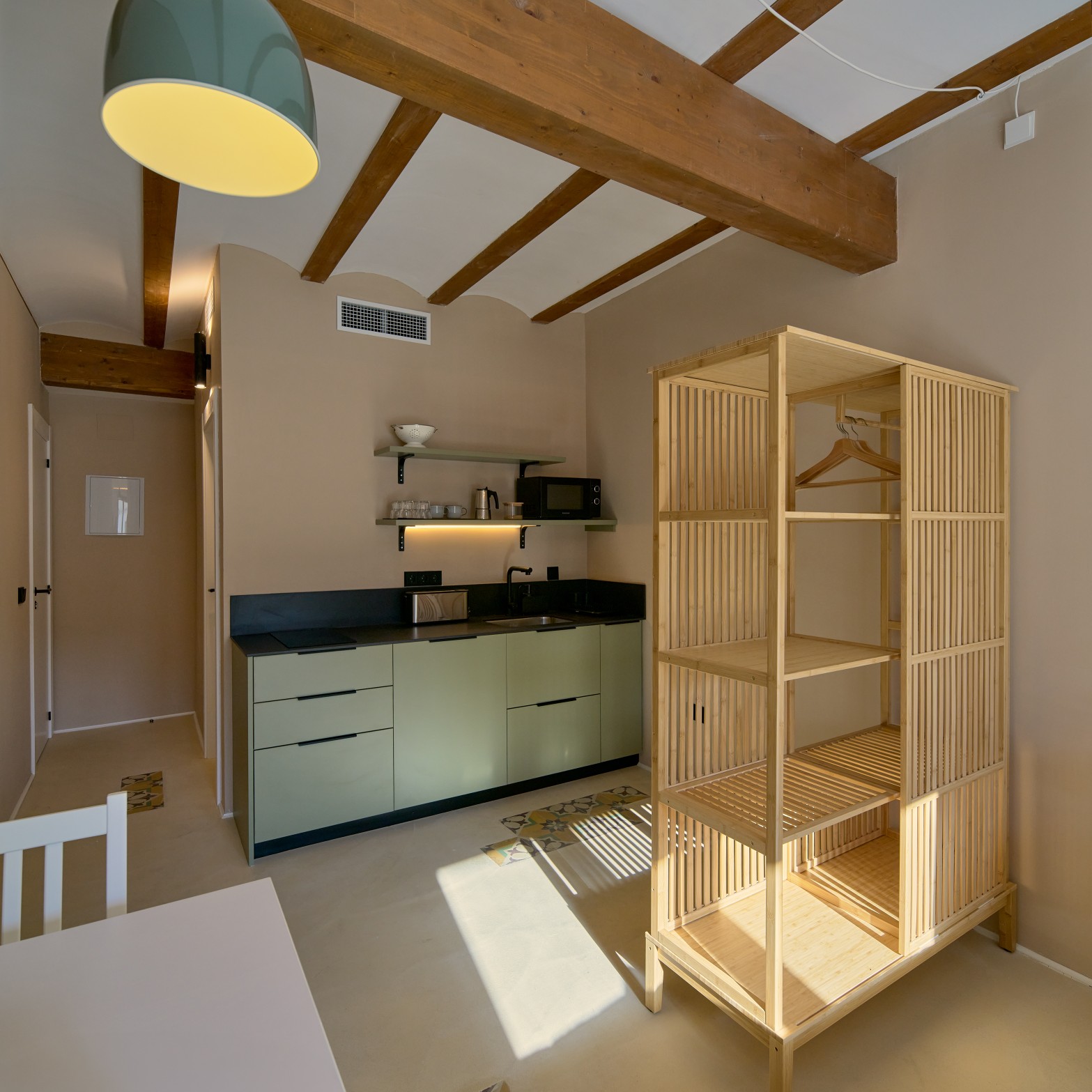 Un apartamento luminoso y bien aprovechado, diseñado para estancias cortas. Incluye cocina equipada, baño y zona de cama con acceso a balcón privado.