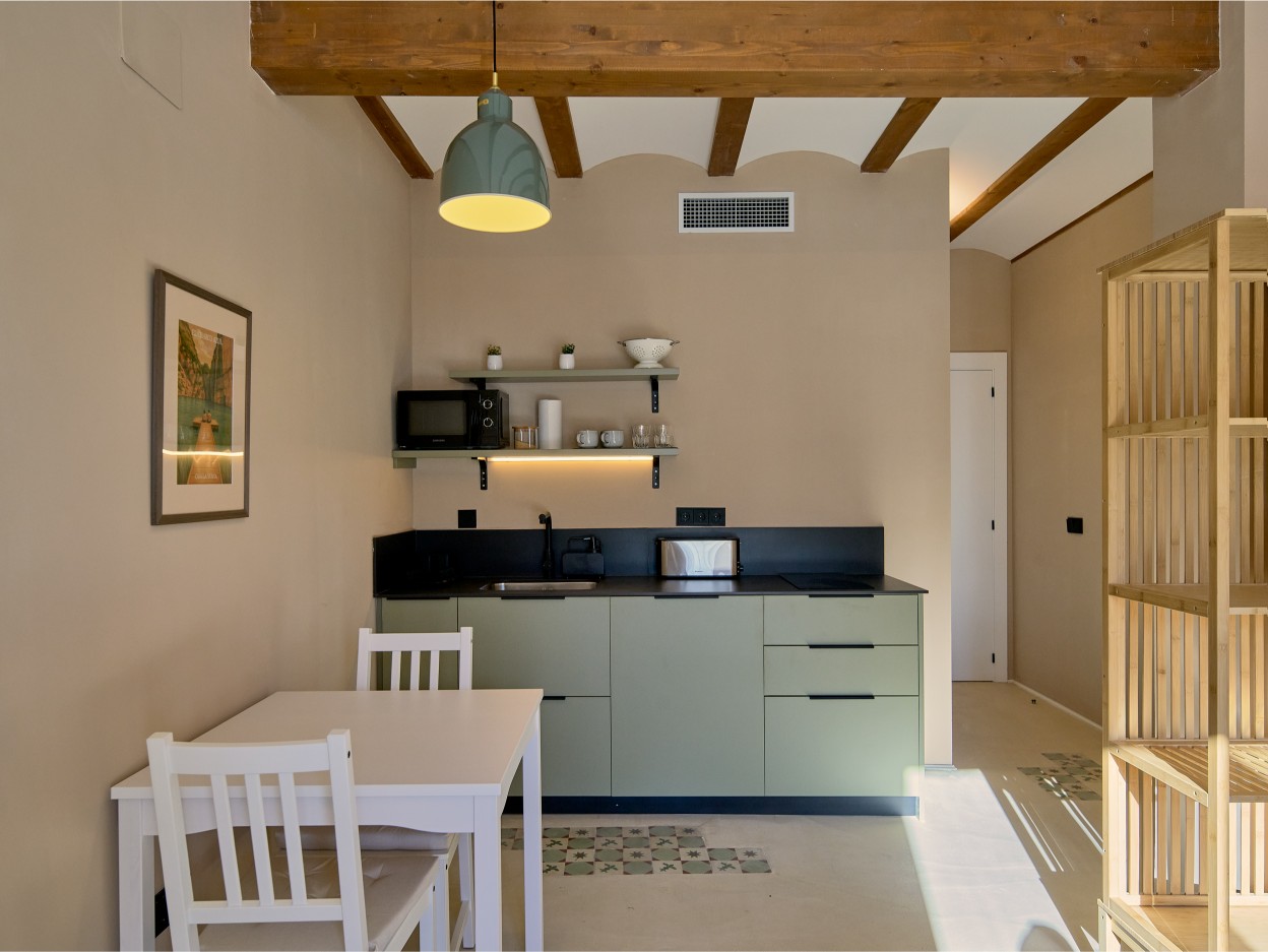 Un apartamento luminoso y bien distribuido, pensado para estancias de corta duración. Cuenta con cocina equipada, baño y zona de dormitorio con salida a balcón privado.